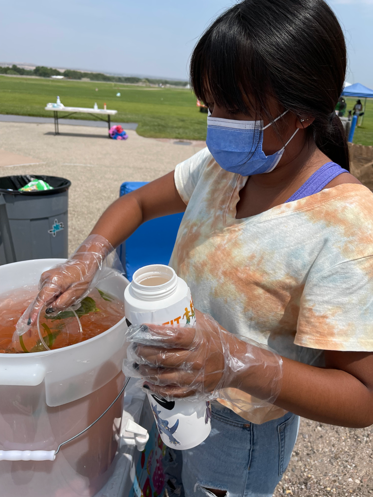 - Youth volunteer, Bryanna Lujan serves up fruit-infused water at the last day of NB3FIT Summer Camp.