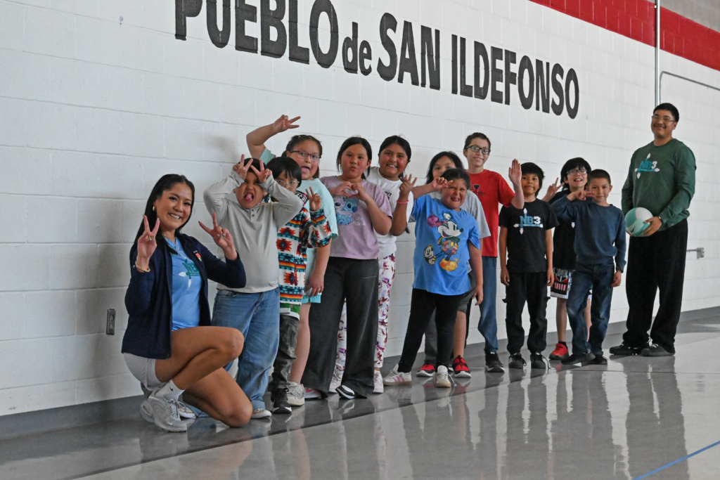 Just after 9 a.m., NB3FIT coaches load equipment at the Notah Begay III (NB3) Foundation headquarters and begin a familiar drive north. The weekly trip takes more than an hour to reach San Ildefonso Pueblo, a close knit community where access to youth sports and physical education is limited. Every Wednesday during the 2025 to 2026 school year, NB3FIT coaches lead physical education classes for kindergarten through sixth grade students attending San Ildefonso Day School. The San Ildefonso Day School plays an important role in the community, focusing on helping students reach their maximum potential while preserving Pueblo tradition, Tewa language and culture. The school’s mission centers on preparing students for the future while strengthening cultural identity.
