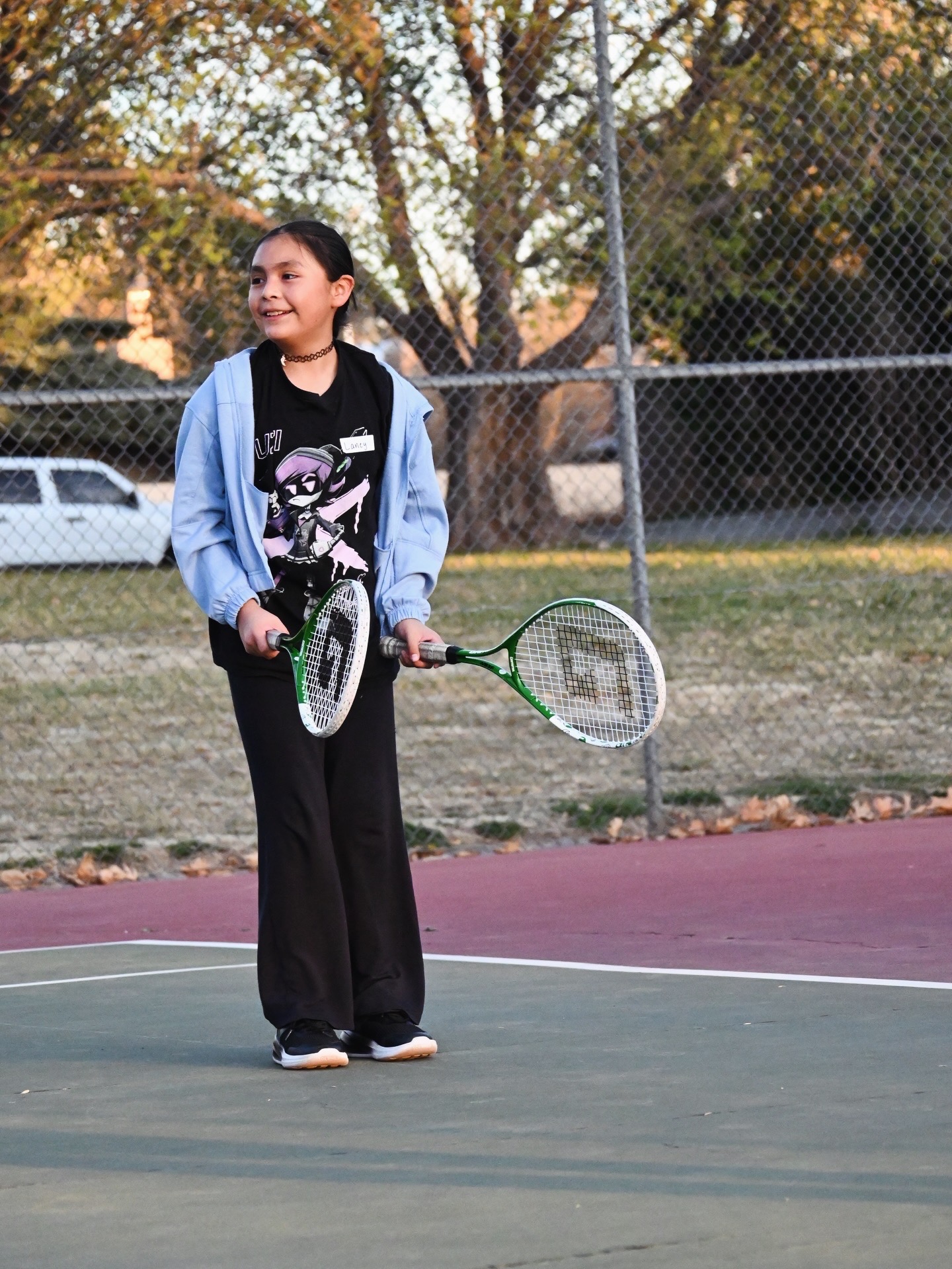 NB3FIT Program Coordinator, Mia Freeland and volunteer coach and NB3 Foundation staff member Jared Lesansee are leading instruction and helping youth learn the basics. With smaller group settings and beginner friendly instruction, tennis offers a welcoming environment for youth who are new to sports. By the end of week two, youth began Friday play days where they compete against one another in a match like settings.