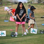 Youth practice twice a week and also have the opportunity to play holes together on Saturdays at Santa Ana Golf Club. Participants focus on fundamentals, etiquette and terminology to help prepare them for organized play. For many youth, this is their first time playing golf, so learning begins with the basics. Youth practice proper grip, learn which clubs to use and, for younger participants, even learn how to properly carry their own bag. These foundational skills help build confidence and comfort on the course.