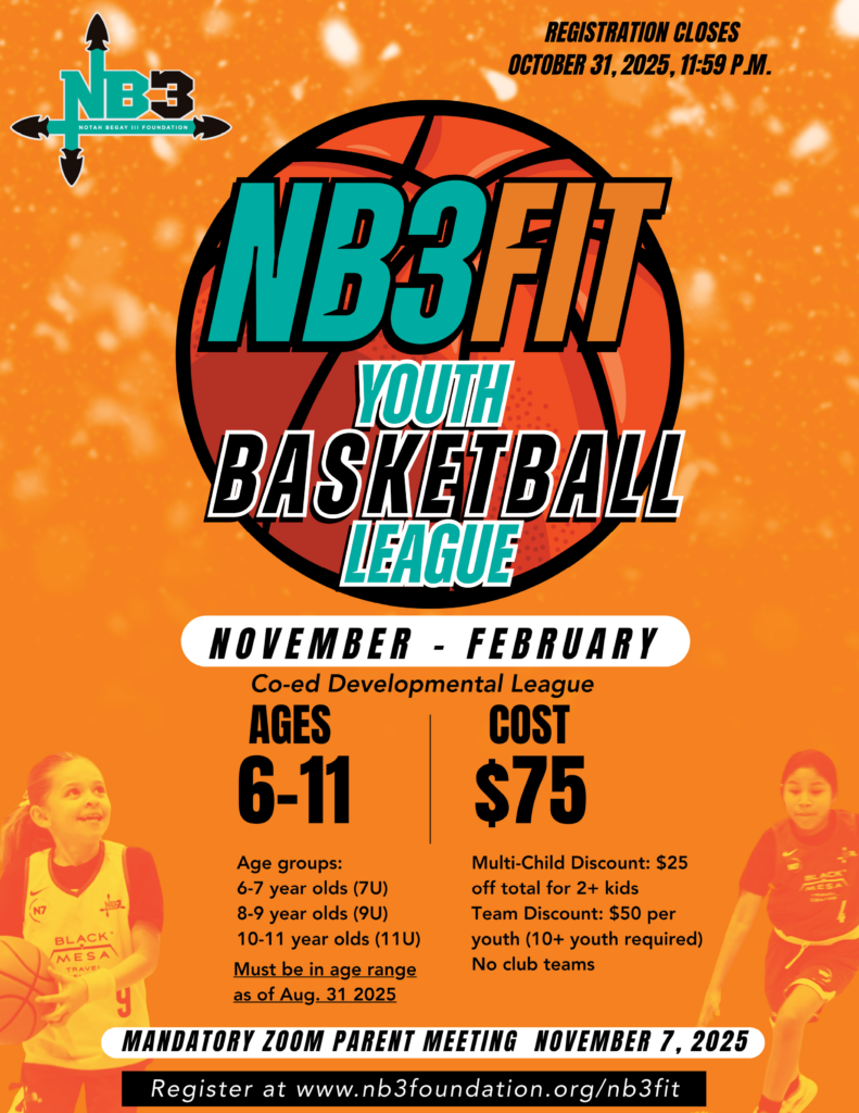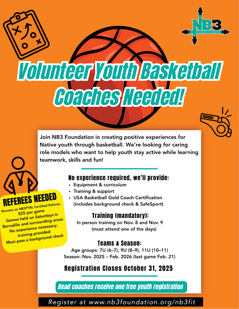 NB3FIT is a direct youth leadership and development program currently serving tribal communities in New Mexico. Through the platform of sport, NB3FIT provides direct programming designed to get Native youth active, healthy and self-assured. NB3FIT hires young adults to mentor and coach Native youth. Through curriculum-based programming, the coaches teach healthy nutrition so youth can make positive healthy lifestyle choices. The youth also learn leadership skills, incorporating cultural values where appropriate, including respect, self-persistence, teamwork and self-efficacy.